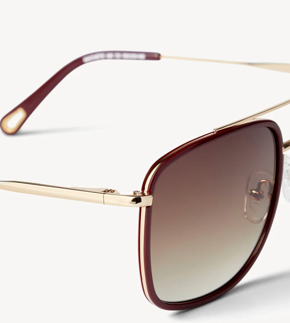 Ultra lightweight aviator sunglasses with frames crafted from gold metal details and Italian acetate.