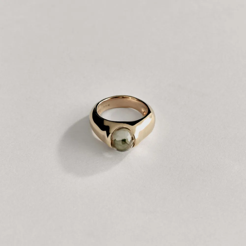 An everyday ring with a moving stone set in the center.