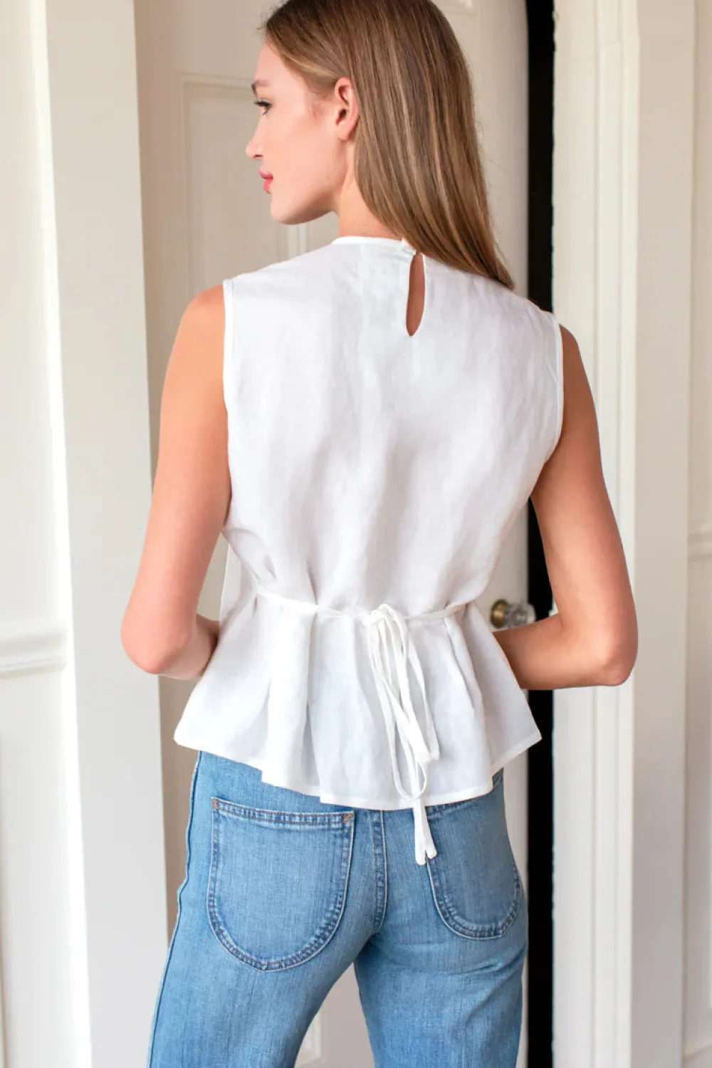 Keyhole opening at back w/ button closure
