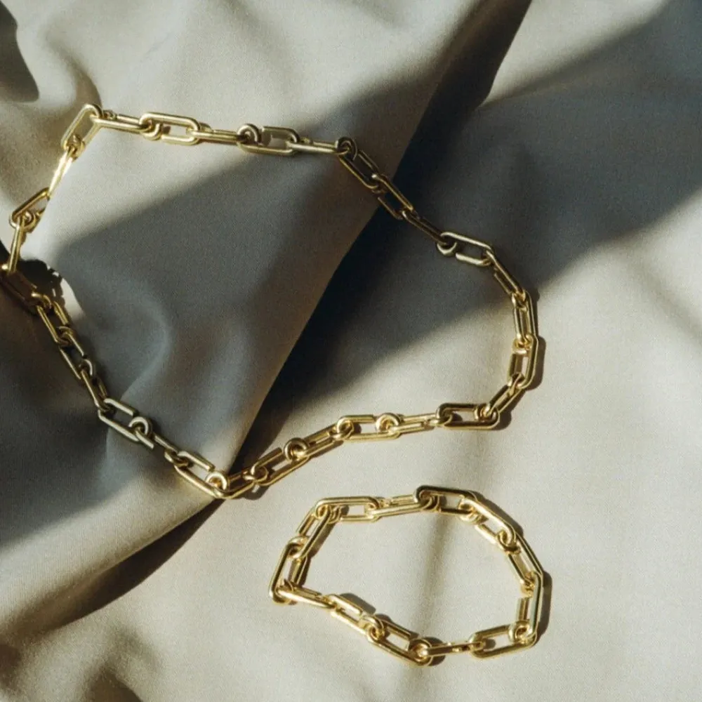 The Arena chain bracelet in sterling silver and Arena gold vermeil chain necklace are also available.