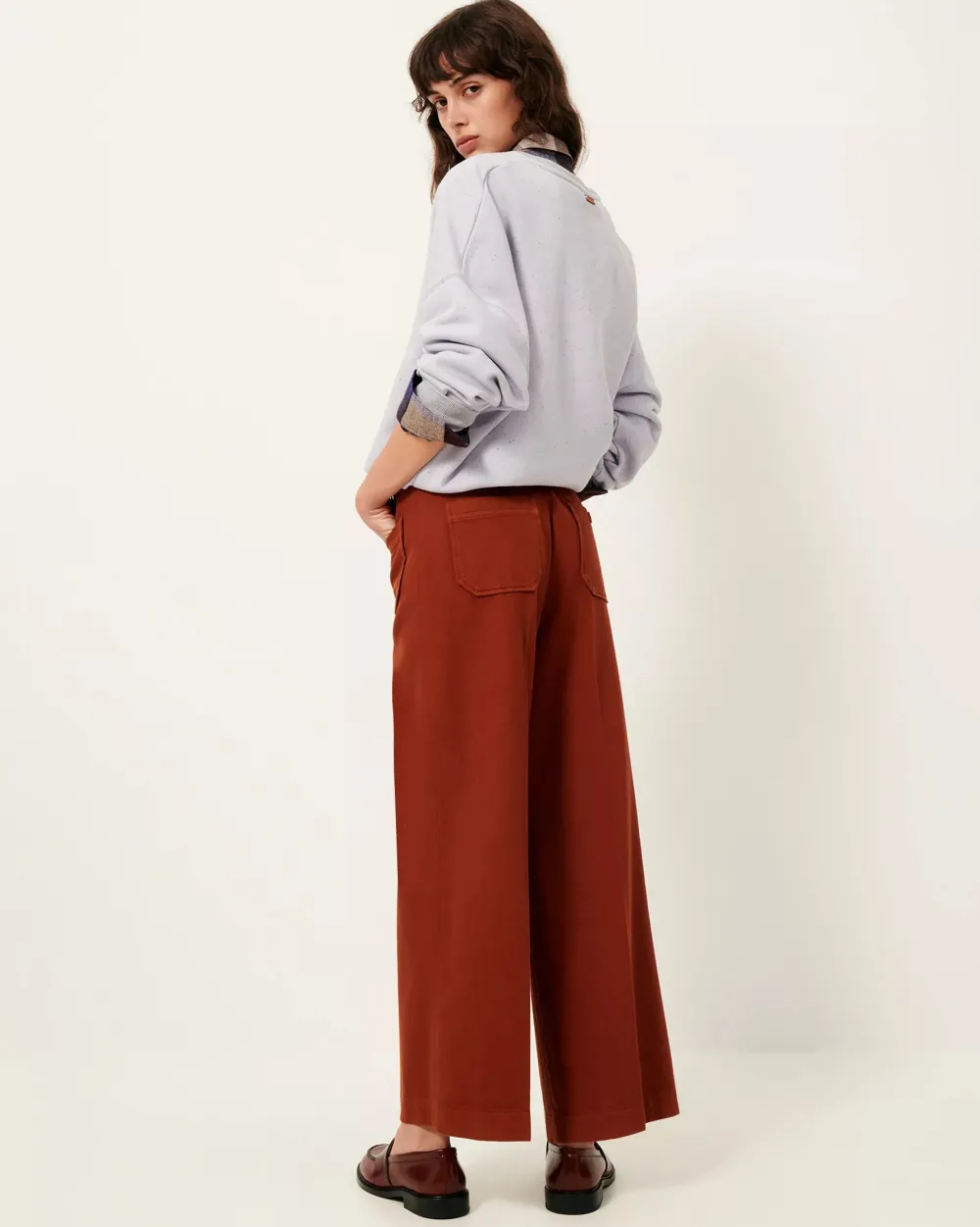 sStraight, 7/8-length pants with defined pleats in a soft, garment-dyed twill fabric, woven in Spain.