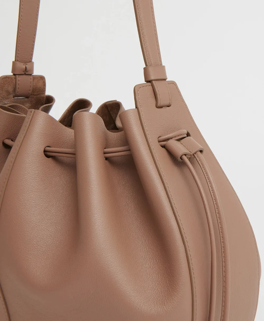 Crafted from our soft Italian tumbled leather, the Flores Bag is inspired by blooming florals. A two-sided drawstring closure creates a petal effect and provides easy access to a spacious suede interior.