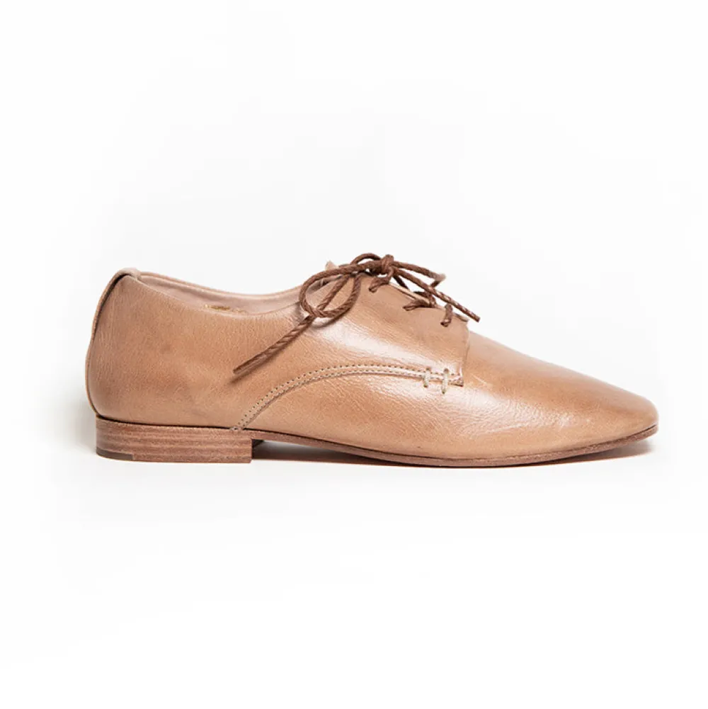 A super chic unisex-style oxford, in buttery soft vegetable-tanned leather from an elite Italian tannery. Modern and subtle square toe, with a playful rope lace. Works as well with skirts as trousers, this Oxford will be your new season-less staple.