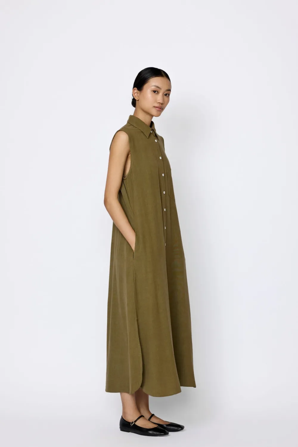 ffortless yet refined, our sleeveless shirt dress is perfect for everyday wear. Crafted from beautifully textured raw silk, it offers a relaxed fit with an elevated finish. This versatile piece features a playful pocket, optional belt and inseam pockets for convenience. A truly timeless design.