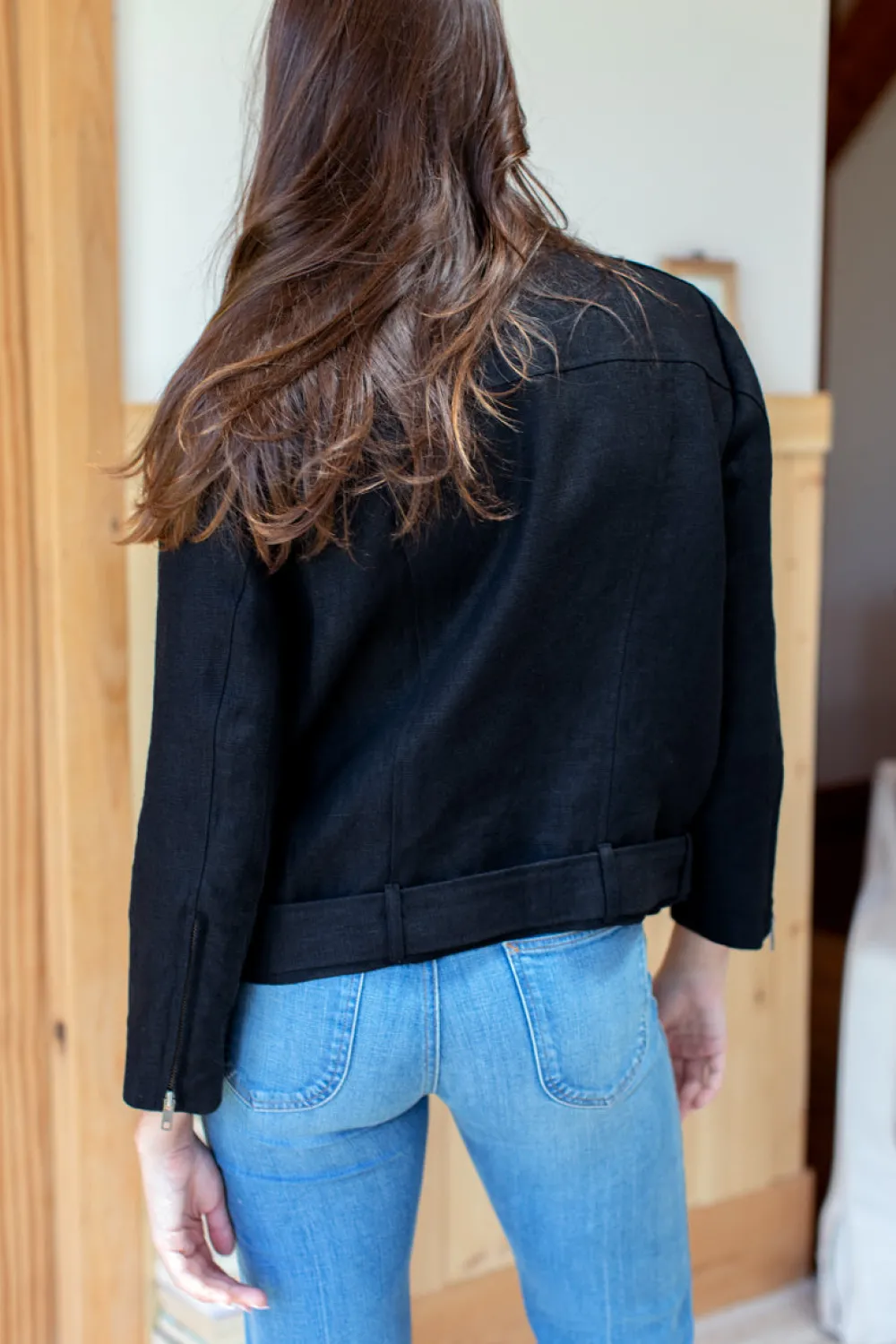 The Irving Moto is the perfect jacket for transitional seasons and warmer winter climates due to its medium weight linen fabrication.