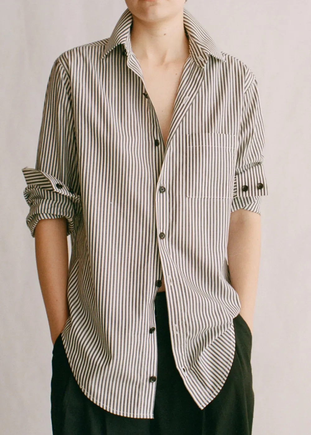 Made in 100% cotton grown in the USA, spun in Turkey, and finished in Portugal, with traceable, upcycled buffalo horn buttons sourced from New York’s Garment District.